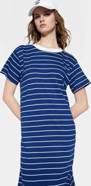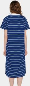 Bu rahat ve şık maxi elbise, yaz aylarında serin ve şık kalmak isteyenler için mükemmel bir seçimdir. Nefes alabilen, yumuşak örme kumaş yapısıyla gün boyu konfor sunar. Polyester ve pamuk karışımı materyal, dayanıklılığı ve uzun ömürlülüğü garanti eder. Kısa kolları ve bisiklet yakasıyla sıcak havalarda rahatlık sağlar. Çizgili deseni, şık ve modern bir görünüm sunar. Yırtmaç detayı ise elbiseye hareketlilik katar.