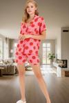 Ersefa Rahat Yazlık Pijama Takımı 100% Viskon Puantiyeli Desen Şortlu Tasarım Uzun Ömürlü Şık Görünüm
