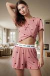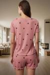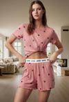Yumuşak ve nefes alan örme kumaştan üretilen bu bej renk pijama takımı, yaz aylarında konforlu bir uyku deneyimi sunmak üzere tasarlandı. Kalpli desenleriyle göz alıcı bir görünüme sahip olan takım, hem şık hem de rahat bir seçenek. Kısa kollu tişörtün bisiklet yakası ve regular kalıbı, vücudunuza mükemmel şekilde oturur. Şortun lastikli beli ve rahat kalıbı sayesinde hareket özgürlüğünüzü kısıtlamadan gün boyu rahat edebilirsiniz. 'Adore' yazılı fitilli paçalarıyla şıklığınıza şıklık katan bu takım, %95 polyester ve %5 elastan içeren yapısıyla da dayanıklılığını kanıtlar. Makinede 60 derecede kolayca yıkanabilir ve uzun süreli kullanım sağlar. Normal bel ve basic silüetle tasarlanan takım, her vücut tipine uyum sağlar. Hem evde dinlenirken hem de lounge ortamlarında rahatlıkla kullanılabilen bu iki parçalı takım, yaz sezonunun ideal tercihlerinden.