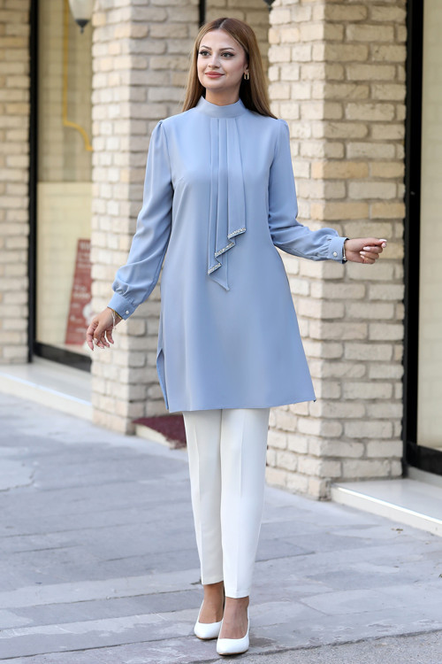 - Dubai Krep kumaştan üretilmiş, uzun ömürlü kullanım sunar.; - Göz alıcı taş baskı detayları ile şıklığınızı ön plana çıkarır.; - Sürdürülebilir malzemeler kullanılarak tasarlanmıştır; çevre dostudur.; - Düz deseniyle kolayca kombinlenebilir ve zamansız bir tarz sağlar.; - Yetişkinler için idealdir; her yaş grubuna hitap eder.; - Kutusuz ambalajıyla pratik kullanım imkanı sunar.; - Standart kol tipi sayesinde rahat hareket etme özgürlüğü verir.; - Full fermuar kapama özelliği ile kolay giyilip çıkartılabilir ve güvenlidir.; - Beli lastikli yapısı konforlu bir oturuş sağlarken, bel bölgesini vurgular.; - Astarsız tasarım modern ve minimalist bir görünüm kazandırır.; - Normal bel yüksekliği günlük kullanım için uygundur.; - Fashion forward persona'sına sahip olan bu takım, trendleri takip eden stil sahibi kadınların tercihi olacak.; - Çift cepli yapısı küçük eşyalarınız için pratik saklama alanları sunar.; - Tesettür giyim koleksiyonuna özel olarak tasarlanmıştır; zarif ve örtünme ihtiyaçlarını karşılar.; - Paket içeriğindeki 2 parçadan oluşan tunikli pantolonlu set, gardrobunuzda eksiksiz bir çözüm oluşturur.; - Kemersiz tasarımıyla minimalizmi benimseyenler için idealdir; fazla aksesuardan kaçınmak isteyenler düşünülerek hazırlandı.; - Sadece kurutemizleme önerisiyle bakımının kolaylaştırılması amaçlandı; böylece ürününüz ilk günkü gibi kalır.; - Regular silueti sayesinde vücut hatlarınıza uyum sağlayarak rahat bir deneyim sunar.; - Bisiklet yakası ile modern ve sofistike bir görünüm elde edersiniz.; - Standart boy ölçüsüyle farklı boylardaki kullanıcılar için uygundur.;