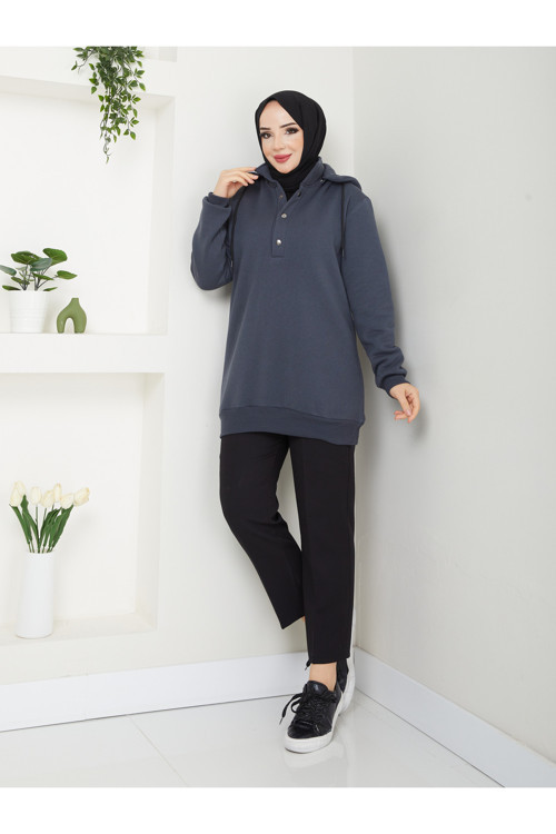 Raika Moda Kapşonlu 3 İplik Büyük Beden Tesettür Sweatshirt