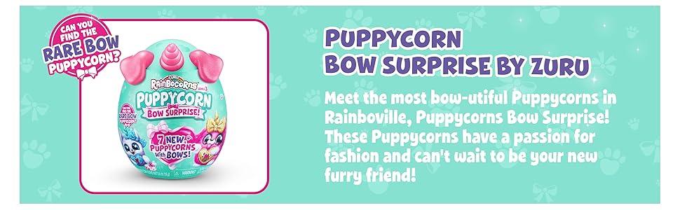 Her Puppycorn Bow Surprise yumurtası 1 Puppycorn Pelüş, 1 Soy&Ortaya Çıkar özellikli Kalp, 1 Puppy Bow, 1 Boo-Boocorn yumurtası, Boo-Boocorn, 1 Rainbocorn Jelly Slime, 1 Puppycorn Çıkartma Paketi ve 1 Koleksiyoncu Broşürü içeriyor.