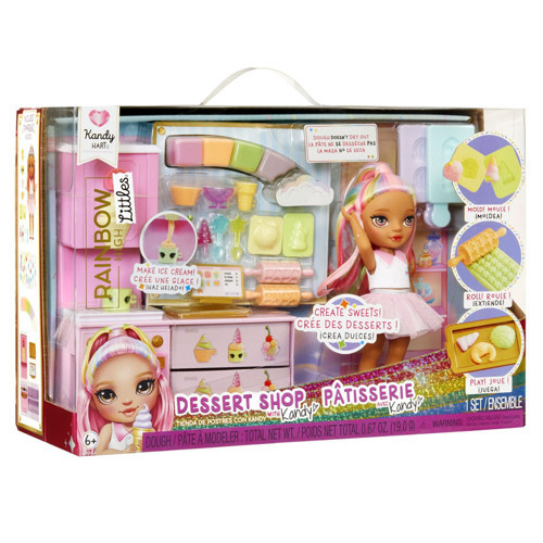 Rainbow High’ın renkli dünyasında bu kez karşımıza küçük kardeşler olan Littles çıkıyor! Kia Hart’ın kız kardeşi Kandy Hart ile birlikte tatlılarla dolu bir hayal dünyasına adım atın. Kandy’nin Tatlı Dükkanı Seti; renkli, kurumayan oyun hamurları ve tatlı şeklinde hamur kalıplarıyla yaratıcılığı teşvik eden eğlenceli bir oyun deneyimi sunar.