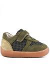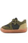 Rakerplus Bob Hakiki Deri Haki Yeşil Barefoot Cırtlı Lastikli Bebek Sneaker Ayakkabı