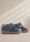 Ekose Desenli Cırt Cırtlı Bebek Ayakkabısı Mavi - Image 1