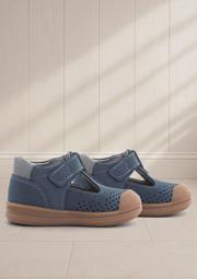 Shaun Hakiki Deri Lacivert Gri Cırtlı Anatomik Bebek Sandalet