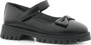 Rakerplus Siyah Kırışık Rugan Kalın Tabanlı Cırtlı Kız Çocuk Babet
