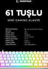 Red Switch klavyeler 61 adet tuşa sahiptir ve hassas dokunuşta dahi hızla tepki verir.