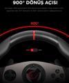 Güçlü force feedback teknolojisi bulunan PC direksiyon seti oyun sırasında yol yüzeyi, çarpışmalar ve diğer etkileşimleri hissettirerek daha immersif bir deneyim sunar.