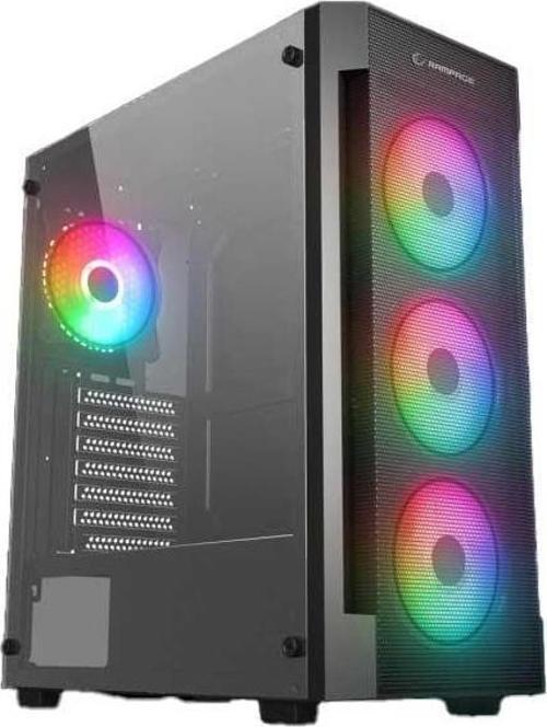 Rampage VIGILANT Mesh 650W 80+ BRONZE Siyah Temperli Camlı 4x12cm RGB Fan ATX Mid-T Gaming Oyuncu Kasası