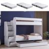 Martin Yavrulu Ranza + 3 Adet Comfort Yatak 1. sınıf melamin kaplı yonga levha malzemeden üretilmiştir.; Menteşe kapaklı merdiven basamakları sayesinde maksimum depolama alanı sağlar.; Yavru karyola dilerseniz yatak koyarak 3. yatağa dönüştürebileceğiniz gibi depolama olarak da kullanabilirsiniz.; Yavru karyola ayakları tekerleklidir.; İç yatak ölçüleri : 90 x 190 cm dir.; Görseldeki yatak yüksekliği : 20 cm’dir.; Kurulu Ölçüleri : Yükseklik x Uzunluk x Derinlik / 178 cm x 240 cm x 96 cm COMFORT ORTOPEDİK YAYLI YATAK ÖZELLİKLERİ Comfort modelimiz ortopedik yatak serimizde üretilmiş modelimizdir.; Vücut ağırlığını dengeli bir biçimde tüm yaylara dağıtması için yaylar arasına takoz süngerler yerleştirilmiştir.; Vücudun ağırlık merkezlerine göre sert ve yumuşak bölgelerden oluşmaktadır.; Konforu arttıran armürlü bamboo kumaş kullanılmıştır.; Yay karkasının yüzeyinde uzanma rahatlığı sağlayan sert keçe kullanılmıştır.; Uyku konforunu arttıran doktorların da tavsiye ettiği sertlikte yüksek drençli form sünger kullanılmıştır.; Yatak yüksekliği 20 cm civarındadır.; Teslimat • Ürünler tüm kargo firmalarının 2016 yılının başında yapmış oldukları anlaşma gereği bina giriş kapısında teslim edilmektedir.; • Bunun için tüm müşterilerimizden kargo firmaları adına özür dileriz.; Ürünler teslim edildiğinde paketlerin dış yüzeyinde bir hasar söz konusu ise lütfenkargocu gitmeden hasar tespit tutanağı tutturunuz.; • Hasar tespit tutanağı olmayan ürünlerle ilgili değişim işlemleri yapılamamaktadır.; Bulunduğunuz bölge mobil alan ise alışverişten önce lütfen bizimle iletişime geçiniz.; Garanti Bilgisi • Üretim ve işçilik hatalarını kapsayan 2 yıllık garanti ile birlikte ürünün konforunu içiniz rahat bir şekilde yaşayabilirsiniz.; • Ürün Avrupa TÜV CERT ISO 9001 kalite standardına uygun üretilmiştir.; Kurulum Hizmeti • Ürünler kargo paketlerine de-monte olarak teslim edilir ve kurulum müşteriye aittir.; • Müşterilerimizin mağdur olmaması için ürünlerimizi kolay kuruluma özel dizayn etmiş bulunmaktayız.; • Bu yüzden paketlerin içerisinde kolay kurulum için kurulum şeması, vidaları ve aksesuarların montaj şeması aynı zamanda uyumlu malzeme torbası içermektedir.