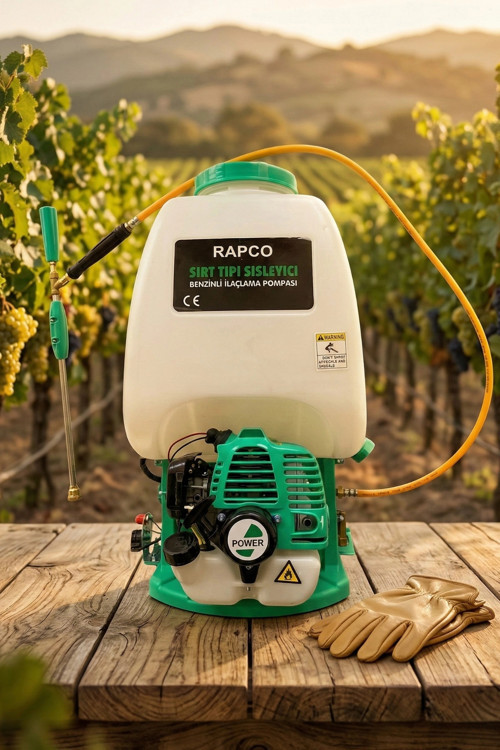 Rapco 25 Litre, fındık bahçeleri, meyve bahçeleri ve geniş tarım arazilerinde yüksek basınçlı ilaçlama ihtiyacını karşılamak için tasarlanmış, dayanıklı ve yüksek performanslı bir ilaçlama makinesidir. 25 litrelik geniş deposu ve güçlü benzinli motoru sayesinde, geniş alanlarda sık sık sıvı tazelemeye gerek kalmadan kesintisiz ve etkili bir koruma sağlar.