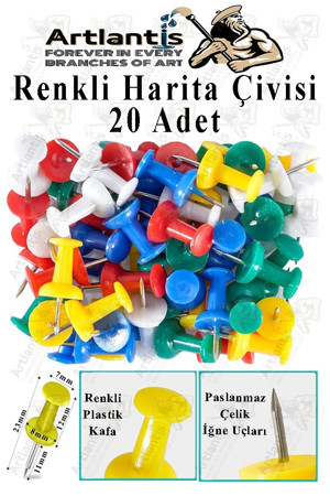 Artlantis Harita Çivisi Renkli 20 li 1 Paket Renkli Plastik Mantar Pano Raptiyesi Pano İğnesi Ofis Okul Büro Renkli Harita Çivisi
