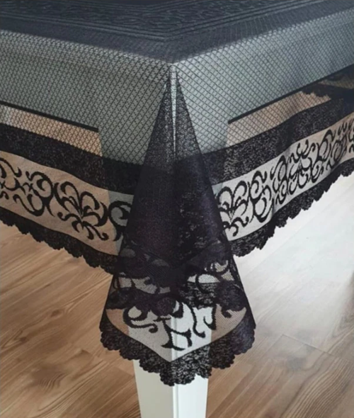 Örme 140x180 Pano Desenli Masa Örtüsü siyah