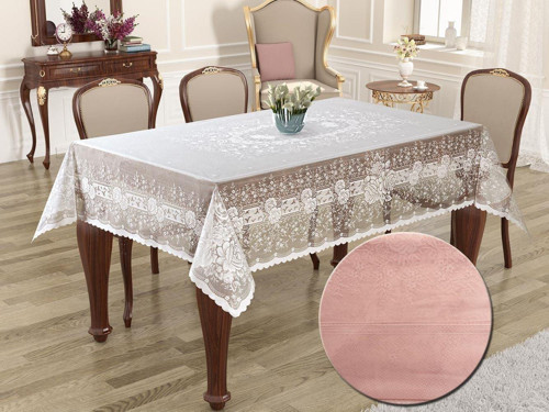 Raşel Örme Pano Desenli Masa Örtüsü Seti 160*220 Sultan gül kurusu