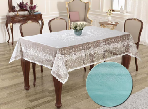 Örme Pano Desenli Masa Örtüsü Seti 160*220 SultanTurkuaz