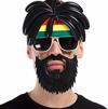Rasta peruklu, rasta sakallı ve bıyıklı parti gözlüğü ile eğlenceye renk katın 27x18 cm boyutuyla her kafaya uyum sağlayan bu gözlük, partiler, festivaller ve kostüm partileri için idealdir.