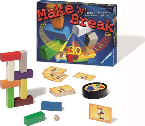 Ravensburger´ın en eğitici aile oyunlarından Make´n´Break´te amaç, zamana karşı yarışırken aynı zamanda ahşap blokları kartlardaki şekillere göre hatasız dizmektir. Nefes kesen bir heyecan ile sürüp giden bu oyun, zamana karşı yarış, zeka ve el becerisinin gelişimine katkı sağlar. Yaş : 8+ Yaş