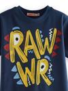 2 parça takım. Pamuklu penye kumaştan, lacivert t-shirt. Üzeri komik yazı baskılıdır. Şort pamuklu kumaştan üretilmiştir. Bir paçasında dinozor baskısı ve 3 boyutlu dinozor tırtırı vardır. Beli lastik ve kordonludur. Tüm Denokids ürünleri Avrupa standartlarında "Çocuk Güvenliği Kuralları" gözetilerek üretilmiştir. İğne dedektörlerinden geçirilmiştir.