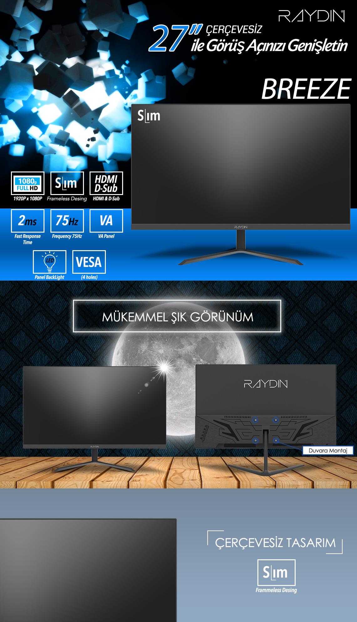 Ekran Tipi: Çerçevesiz Tasarım Düz Ekran