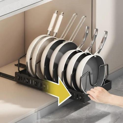 TELESKOPİK RAYLI TAVA TENCERE ORGANİZERİÜrün Özellikleri Teleskopik raylı tava tencere organizeri, mutfakta yer tasarrufu sağlamak ve mutfak gereçlerini düzenli şekilde yerleştirmek için ideal bir çözümdür. Dayanıklı siyah metal malzemeden üretilmiş olan ürün, elektrostatik boya kaplaması sayesinde şık bir görünüm sunar. 6 bölmeli yapısı ile tencere, tava, kapak veya tepsileri dikey şekilde yerleştirmenizi sağlar. Delme gerektirmeyen nano yapışkan bantlar sayesinde kolayca monte edilirken, istenirse vida ile de sabitlenebilir. Dolap içi, tezgah üstü veya çekmece içi kullanımlar için uygundur. Kaymaz yapısı ve sağlam gövdesi ile tavalar arasında oluşabilecek çizilmeleri ve deformasyonu önler. Farklı boyutlardaki tavalara uyum sağlayarak mutfak organizasyonunda maksimum verim sunar. Paket İçeriği 1 Adet Teleskopik Raylı Tava Tencere Organizeri