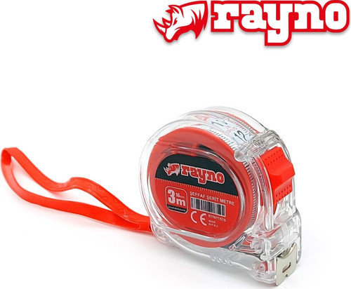 Ev, ofis, atölye veya hobi işleri için güvenle kullanılabilir. Rayno Şeffaf Şerit Metre 3m x 16mm, kompakt ve şeffaf tasarımıyla ölçüm işlerinizi kolaylaştırır.