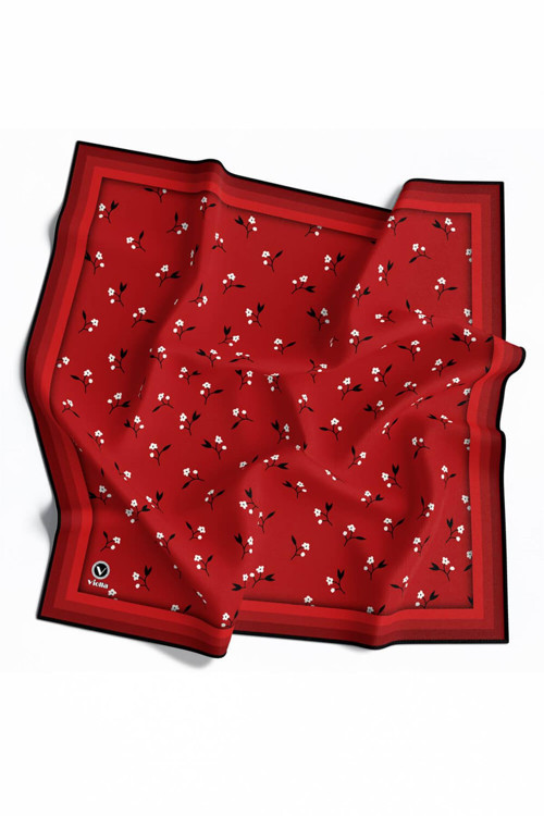 Violla Rayon Çıtır Çiçek Desenli Kırmızı Renkli 90x90 Eşarp (İpek İçermez) Kenar Dikiş Şekli El Dikişli