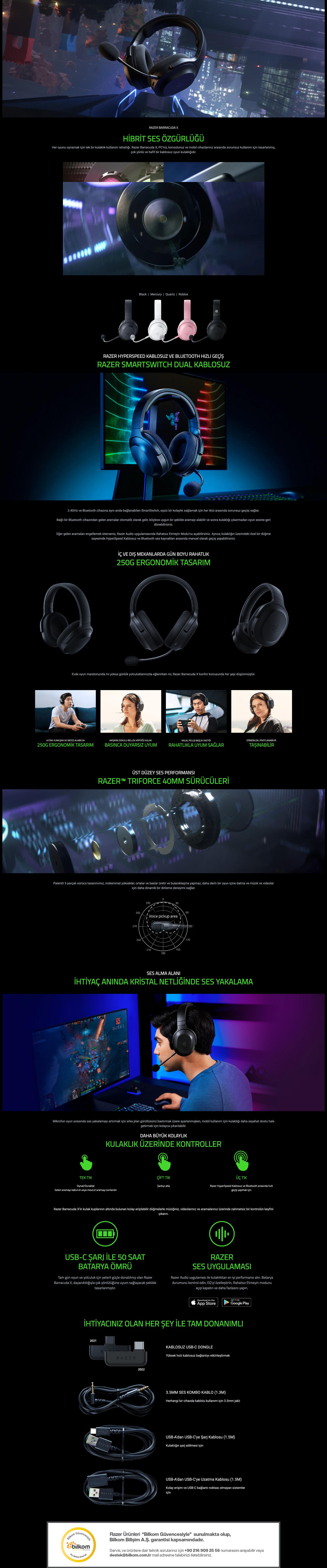 Razer Barracuda X RZ04-04430100-R3M1 Kablosuz Mikrofonlu Kulak Üstü Oyuncu Kulaklığı