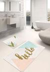 RealHomes Altın Yazılı Geometrik Pastel Mavi-Pembe Desenli 2'Li Kaymaz Taban Yıkanabilir Banyo Paspas Seti