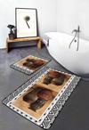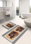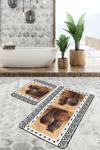 Antik vazolar desenli kahverengi ve bej renklerin şıklığını banyonuza taşıyan 2'li kaymaz taban yıkanabilir banyo paspas seti, zarif tasarımıyla banyonuza estetik bir dokunuş kazandırır.