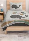 Balina desenli çocuk ve genç odası pike takımı, hem estetik hem de fonksiyonel bir yanıyla çocuk odalarına neşe katıyor.