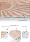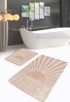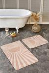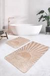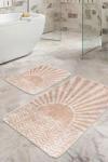 Bej pastel tonlarda, güneş ışınları ve dalgalı çizgilerden oluşan modern desen ile tasarlanmış 2'li kaymaz tabanlı banyo paspas seti, banyonuza ferah ve şık bir atmosfer katmak için ideal seçimdir.