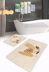 Bej zemin üzerine kahverengi ve hardal tonlarında yaprak desenlerinin modern tasarımıyla dikkat çeken 2'li kaymaz tabanlı banyo paspas setimiz, banyonuza şıklık ve konfor katmak için ideal bir tercihtir.