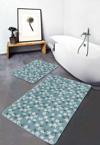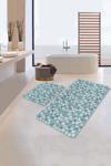 Beyaz papatya desenli mavi zeminde tasarlanmış bu 2'li banyo paspas seti, hem şık hem de fonksiyonel bir seçenektir.