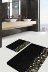 Beyaz ve altın renklerde çiçek desenleriyle süslenmiş siyah zemin üzerine tasarlanmış bu 2'li banyo paspas seti, modern ve şık bir görünüm sunar.