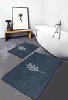 Lacivert zemin üzerinde minimal beyaz yaprak deseniyle tasarlanmış 2'li banyo paspas setimiz, şıklığı ve işlevselliği bir araya getirir.