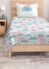 Bulut desenli bu tek kişilik çocuk ve genç odası pike takımı, hem dekoratif hem de günlük kullanım için idealdir.