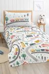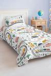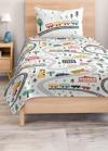 Canlı araç desenleri ile tasarlanmış olan bu pike takımı, çocuk ve genç odası için ideal bir seçenektir.
