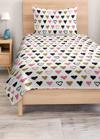 Canlı renkli kalp desenleriyle süslenmiş bu tek kişilik pike takımı, çocuk ve genç odaları için mükemmel bir seçimdir.