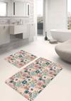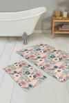 Çiçek desenli pudra ve mavi renklerin uyumunu yansıtan 2'li kaymaz taban yıkanabilir banyo paspas seti, banyonuza zarif ve ferah bir dokunuş sağlar.