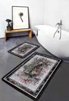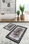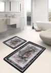 Çiçek desenli ve siyah-gri renk uyumlu bu kanvas vintage tarzındaki 2'li banyo paspas seti, banyonuza şıklık ve özgünlük katmak için ideal bir seçimdir.