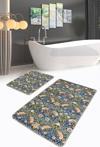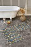 Çiçek ve kuş desenlerinden oluşan laci ve yeşil renklerin hakim olduğu bu 2'li banyo paspas seti, banyonuza doğadan ilham alan zarif ve canlı bir hava katıyor.