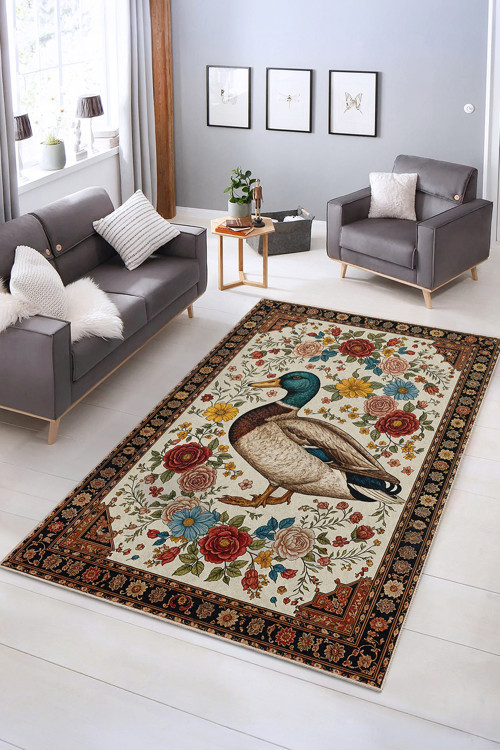 Hayalinizdeki oturma odasını oluşturmak için ihtiyacınız olan tek şey bu çiçekli ördek desenli halı!