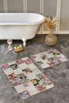 RealHomes Çiçekli Patchwork Etnik Desenli Kırmızı-Siyah 2'Li Kaymaz Taban Yıkanabilir Banyo Paspas Seti