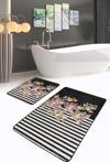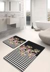 Çiçekli siyah-beyaz çizgili desenle tasarlanmış bu 2'li banyo paspas seti, modern ve şık bir görünüm sunar.