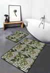 Çizgili siyah beyaz zeminde yeşil yaprak desenli 2'li banyo paspas seti, modern ve şık tasarımı ile banyonuza doğal bir hava katıyor.