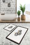 RealHomes Damask Desenli Siyah-Kahverengi Çerçeveli 2'Li Kaymaz Taban Yıkanabilir Banyo Paspas Takımı