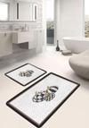 Modern banyolara uyum sağlayan damask desenli siyah ve kahverengi çerçeveli bu paspas takımı, hem fonksiyonel hem estetik çözümler arayanlar için ideal tercihtir.