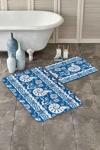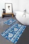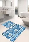 RealHomes Deniz Kabukları Ve Yıldızlar Desenli Mavi Beyaz 2'Li Kaymaz Taban Yıkanabilir Banyo Paspas Takımı