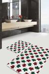 Ekoseli kırmızı ve yeşil yaprak desenine sahip bu 2'li banyo paspas seti, banyonuzun dekorasyonuna canlı ve modern bir dokunuş katmak için tasarlanmıştır.